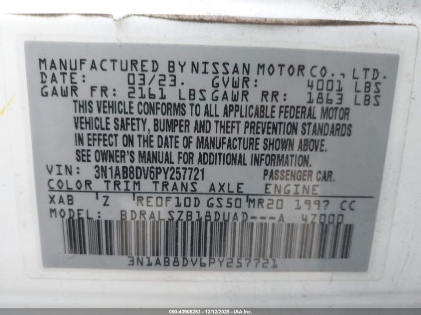 2023 NISSAN SENTRA 2023 року Бензин, 2.0, Передній привід, vin - 3N1AB8DV6PY257721 з США
