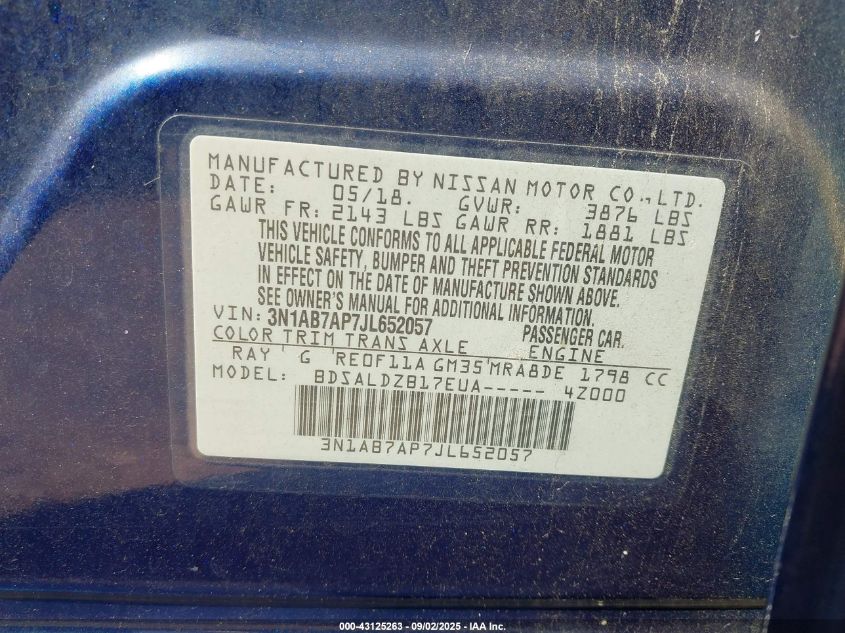 Колір СинійЦиліндри 4Привід Передній привідVIN 3N1AB7AP7JL652057Стан Заводиться та їде (перевірено)Ушкодження ЗадняДата аукціону 2025-12-12 AutoRIA