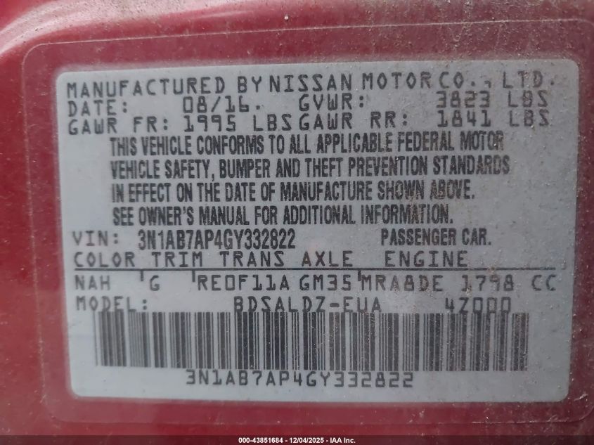 Колір ЧервонийЦиліндри 4Привід Передній привідVIN 3N1AB7AP4GY332822Стан ЗаводитьсяУшкодження Передня ліва AutoRIA
