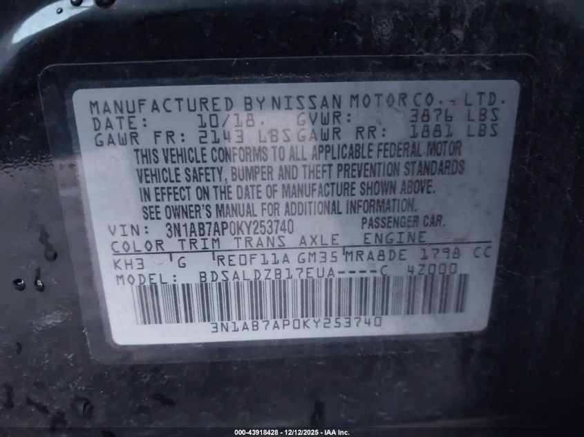 Колір ЧорнийЦиліндри 4Привід Передній привідVIN 3N1AB7AP0KY253740Стан Заводиться та їде (перевірено)Ушкодження Передня або задня AutoRIA