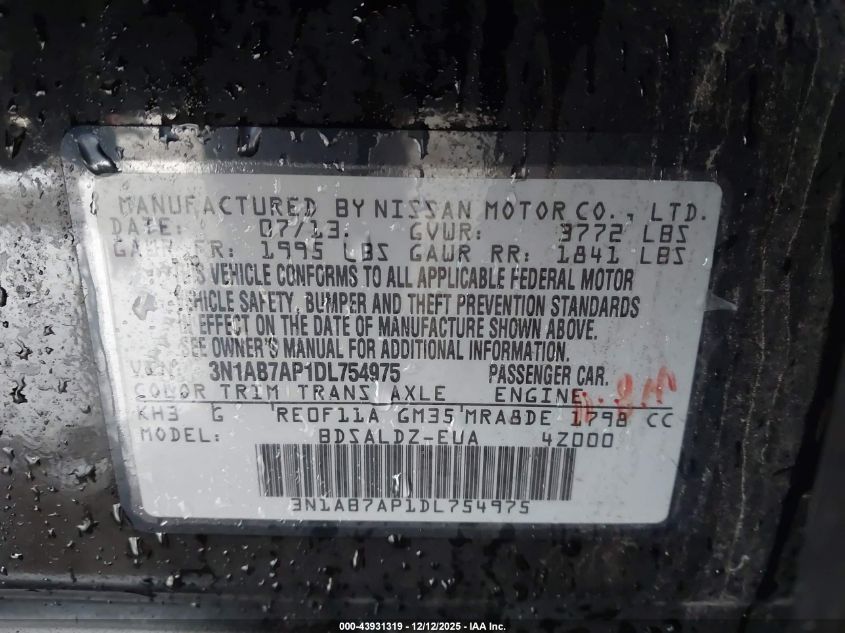 Колір ЧорнийЦиліндри 4Привід Передній привідVIN 3N1AB7AP1DL754975Стан Заводиться та їде (перевірено)Ушкодження Передня або задня AutoRIA