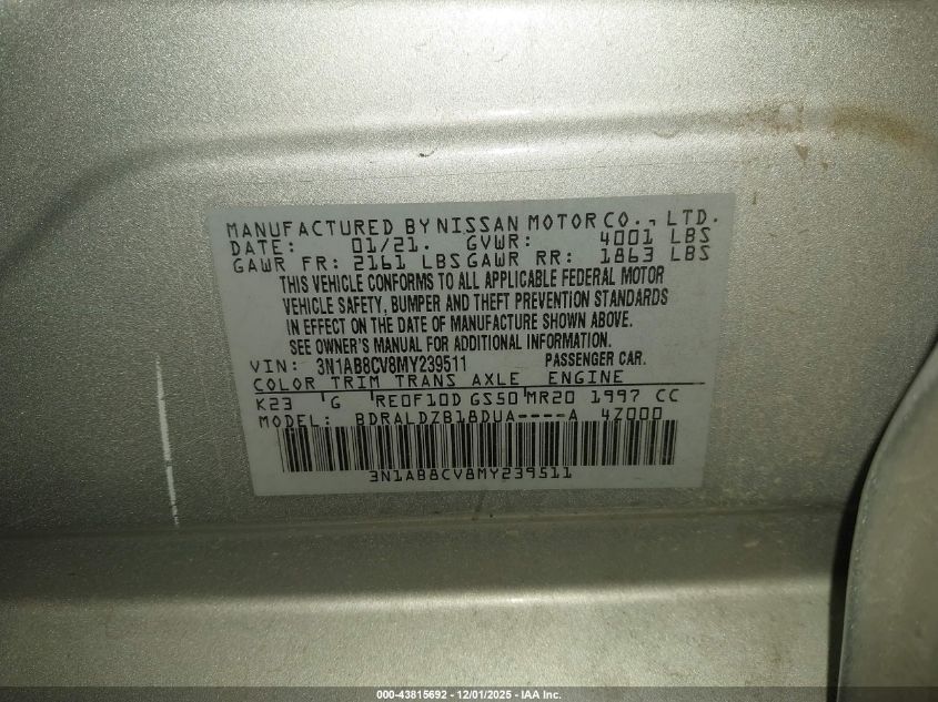 2021 NISSAN SENTRA 2021 року Бензин, 2.0, Передній привід, vin - 3N1AB8CV8MY239511 з США