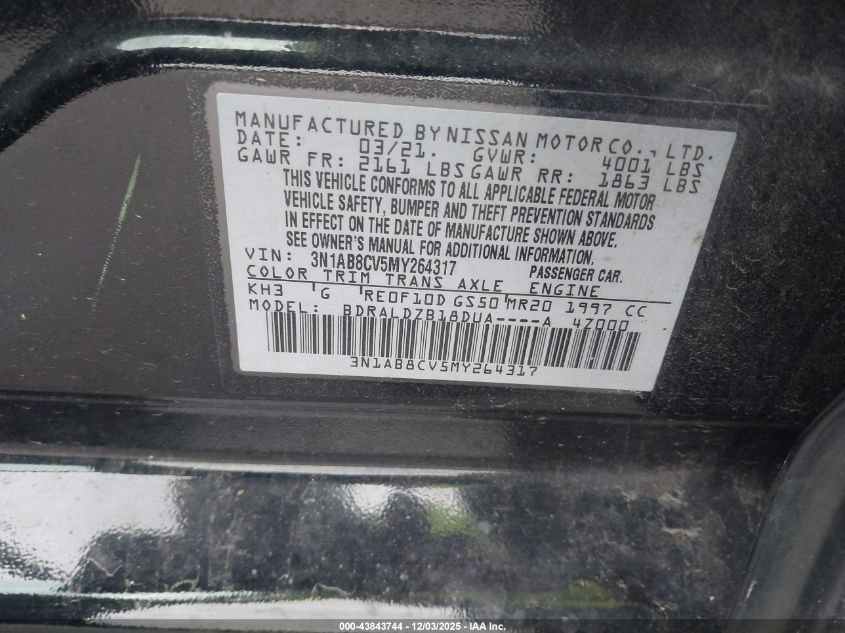 2021 NISSAN SENTRA 2021 року Бензин, 2.0, Передній привід, vin - 3N1AB8CV5MY264317 з США
