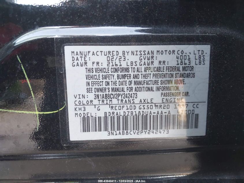 2023 NISSAN SENTRA 2023 року Бензин, 2.0, Передній привід, vin - 3N1AB8CV2PY242473 з США