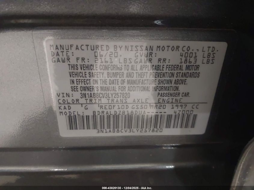 2020 NISSAN SENTRA 2020 року Бензин, 2.0, Передній привід, vin - 3N1AB8CV3LY257820 з США