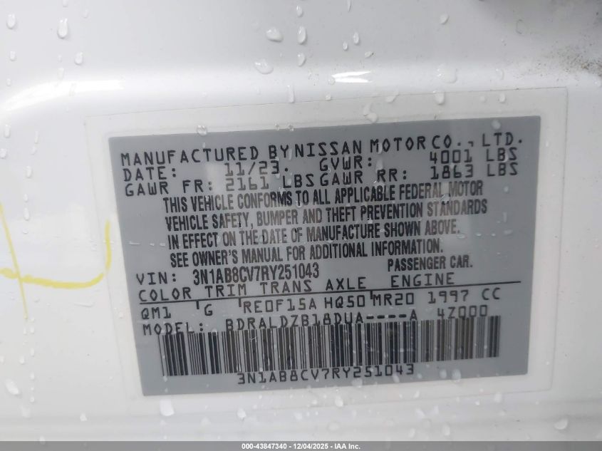 2024 NISSAN SENTRA 2024 року Бензин, 2.0, Передній привід, vin - 3N1AB8CV7RY251043 з США