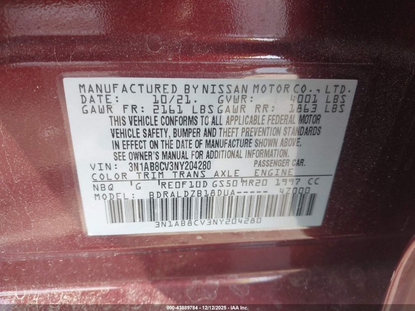 2022 NISSAN SENTRA 2022 року Бензин, 2.0, Передній привід, vin - 3N1AB8CV3NY204280 з США