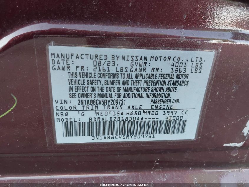 2024 NISSAN SENTRA 2024 року Бензин, 2.0, Передній привід, vin - 3N1AB8CV5RY209731 з США