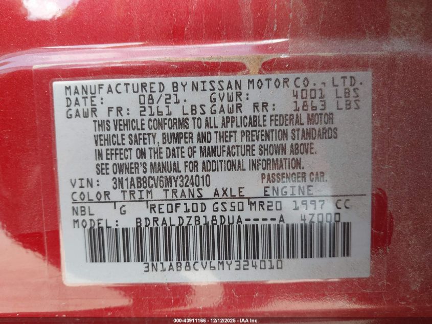 2021 NISSAN SENTRA 2021 року Бензин, 2.0, Передній привід, vin - 3N1AB8CV6MY324010 з США