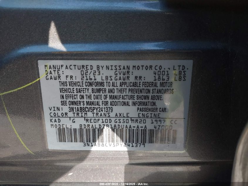 2023 NISSAN SENTRA 2023 року Бензин, 2.0, Передній привід, vin - 3N1AB8CV5PY241379 з США