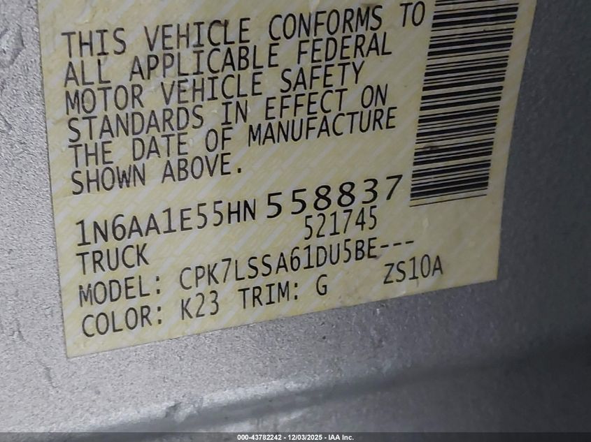 Колір СрібнийЦиліндри 8Привід Повний привідVIN 1N6AA1E55HN558837Стан Заводиться та їде (перевірено)Ушкодження Права сторона AutoRIA