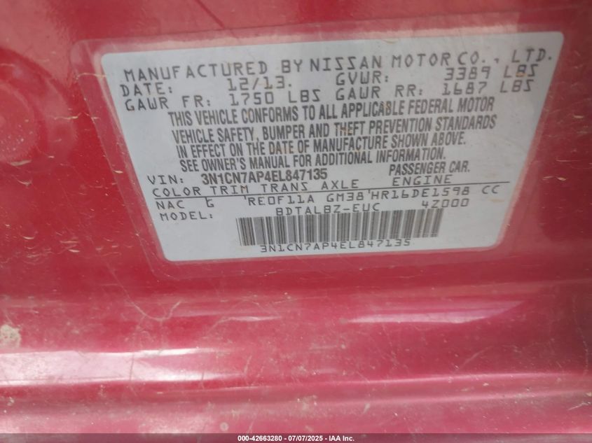 2014 NISSAN VERSA S