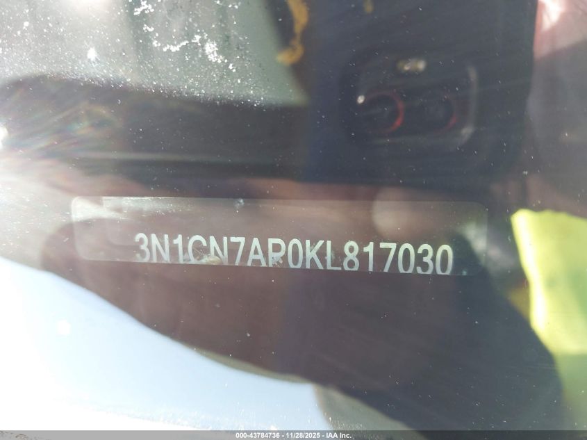 Колір ЧорнийЦиліндри 4Привід Передній привідVIN 3N1CN7AP0KL817030Стан Заводиться та їде (перевірено)Ушкодження Права сторона AutoRIA