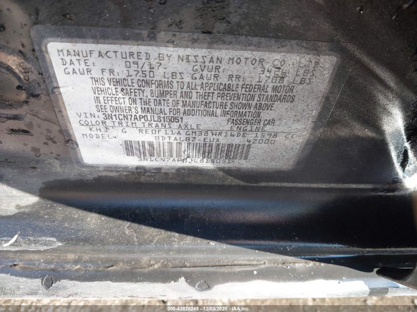 Колір ЧорнийЦиліндри 4Привід Передній привідVIN 3N1CN7AP0JL815051Стан СтаціонарноУшкодження Передня або задня AutoRIA