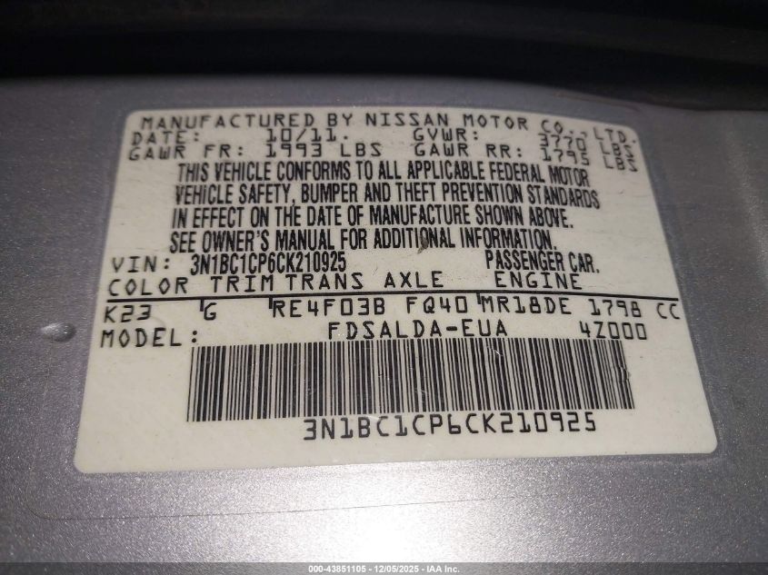2012 NISSAN VERSA S