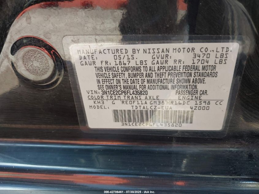 2015 NISSAN VERSA NOTE 2015 року Бензин, 1.6, Передній привід, vin - 3N1CE2CP6FL435820 з США