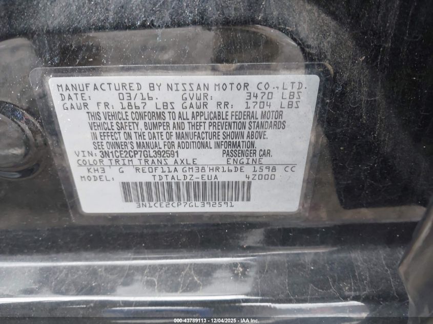2016 NISSAN VERSA NOTE S