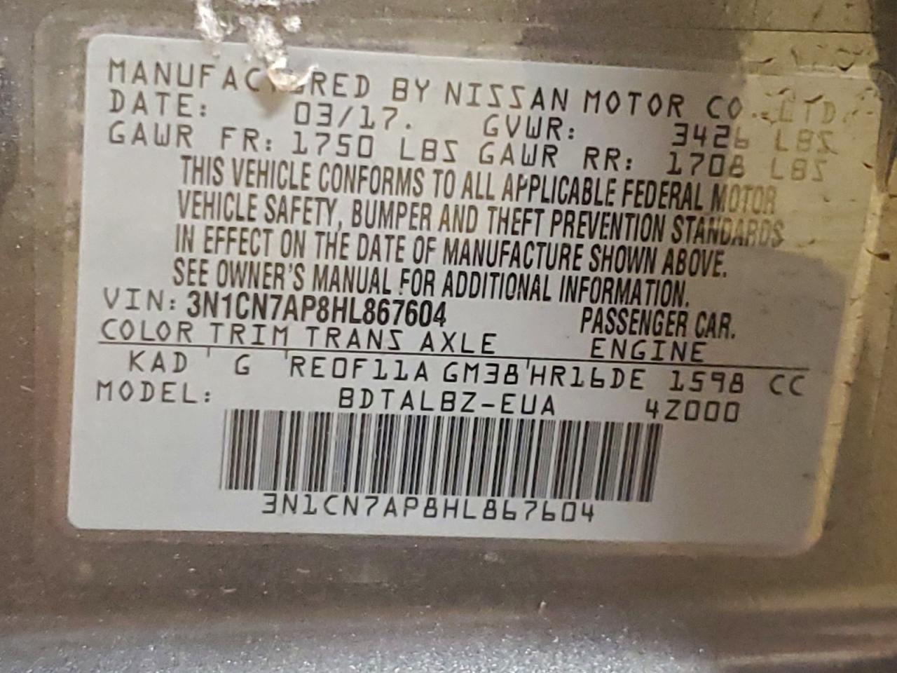 2017 NISSAN VERSA 2017 року Бензин, 1.6, , vin - 3N1CN7AP8HL867604 з США