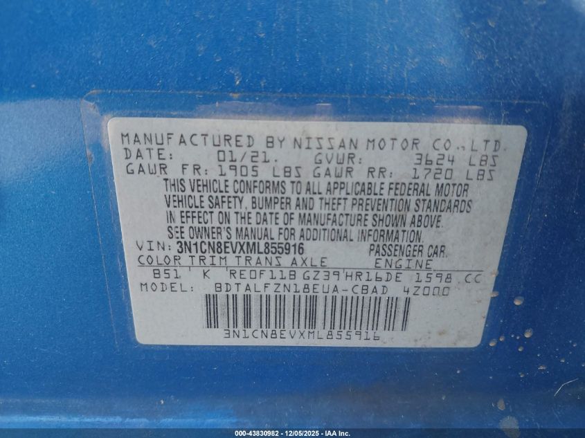 2021 NISSAN VERSA 2021 року Бензин, 1.6, Передній привід, vin - 3N1CN8EVXML855916 з США