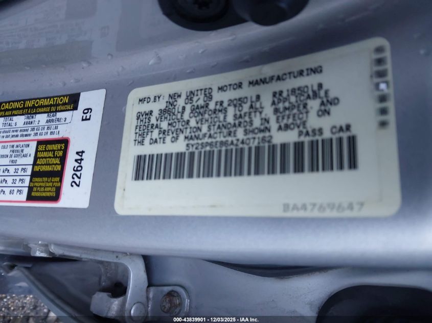 Колір СірийЦиліндри 4Привід Передній привідVIN 5Y2SP6E86AZ407162Стан СтаціонарноУшкодження Передня або задня