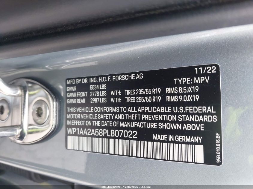 2023 PORSCHE MACAN 2023 року Бензин, 2.0, Повний привід, vin - WP1AA2A58PLB07022 з США