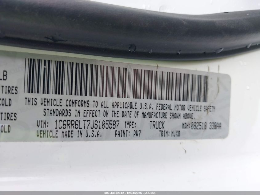 2018 RAM 1500 2018 року Бензин, 5.7, , vin - 1C6RR6LT7JS105587 з США