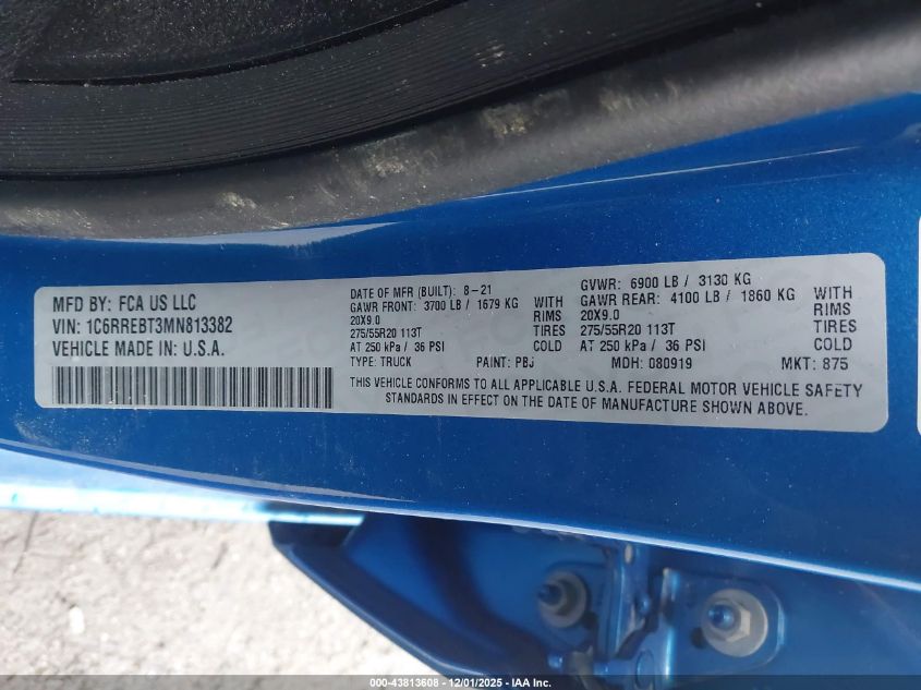 2021 RAM 1500 2021 року Бензин, 5.7, , vin - 1C6RREBT3MN813382 з США