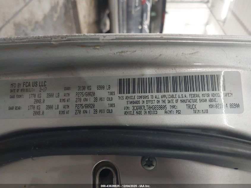 2017 RAM 1500 2017 року Бензин, 5.7, Повний привід, vin - 3C6RR7LT0HG659805 з США
