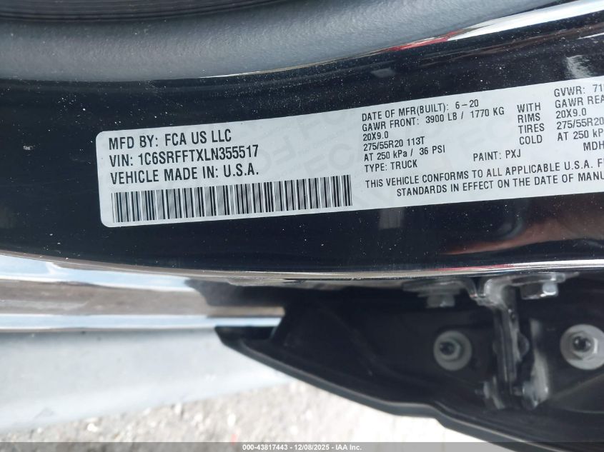 2020 RAM 1500 2020 року Бензин, 5.7, Повний привід, vin - 1C6SRFFTXLN355517 з США