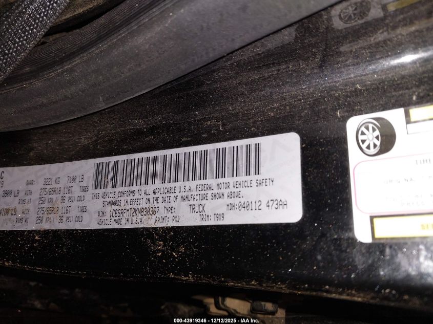2019 RAM 1500 2019 року Бензин, 5.7, Повний привід, vin - 1C6SRFMT2KN830367 з США