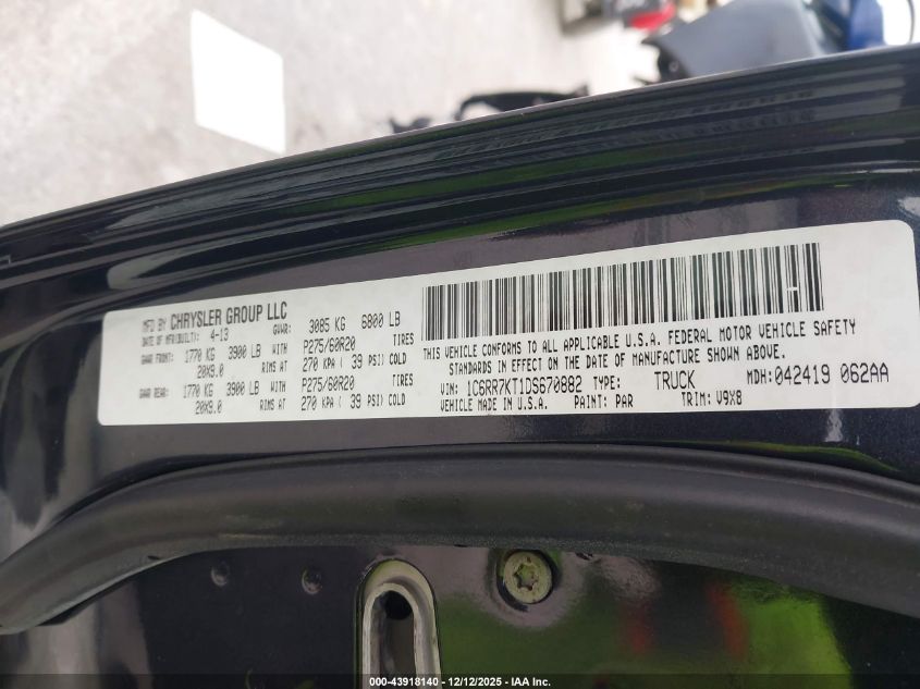 2013 RAM 1500 2013 року Бензин, 5.7, Повний привід, vin - 1C6RR7KT1DF670882 з США