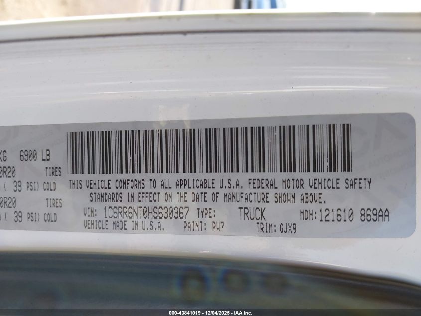 Колір БілийЦиліндри 8VIN 1C6RR6NT0HS630367Стан СтаціонарноУшкодження Передня права AutoRIA