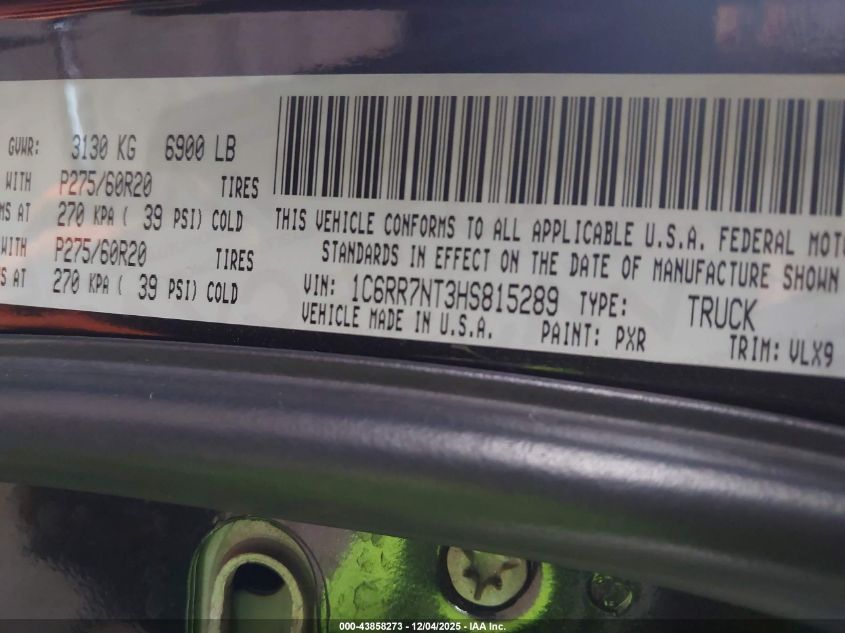 2017 RAM 1500 2017 року Бензин, 5.7, Повний привід, vin - 1C6RR7NT3HS815289 з США