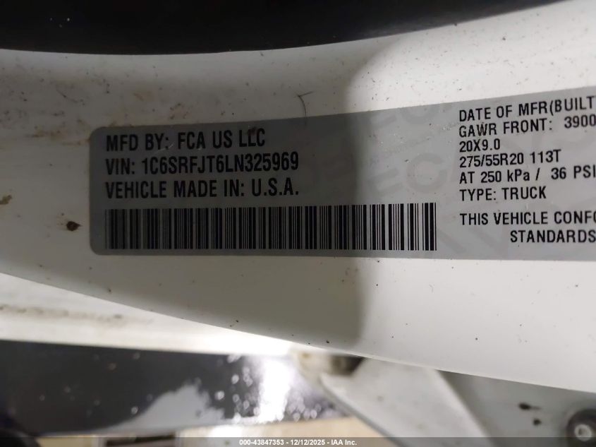2020 RAM 1500 2020 року Бензин, 5.7, Повний привід, vin - 1C6SRFJT6LN325969 з США