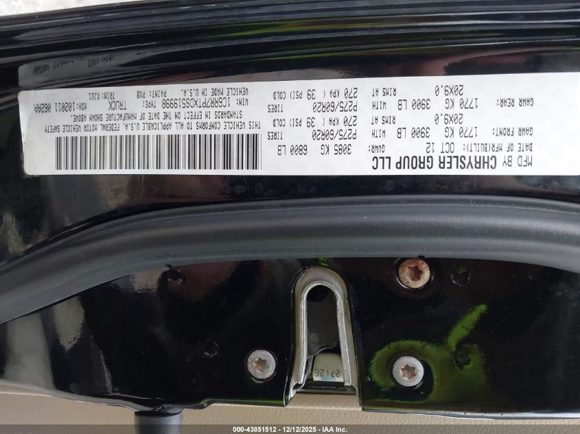 Колір ЧорнийЦиліндри 8Привід Повний привідVIN 1C6RR7PTXDS519998Стан Заводиться та їде (перевірено)Ушкодження Звичайний знос