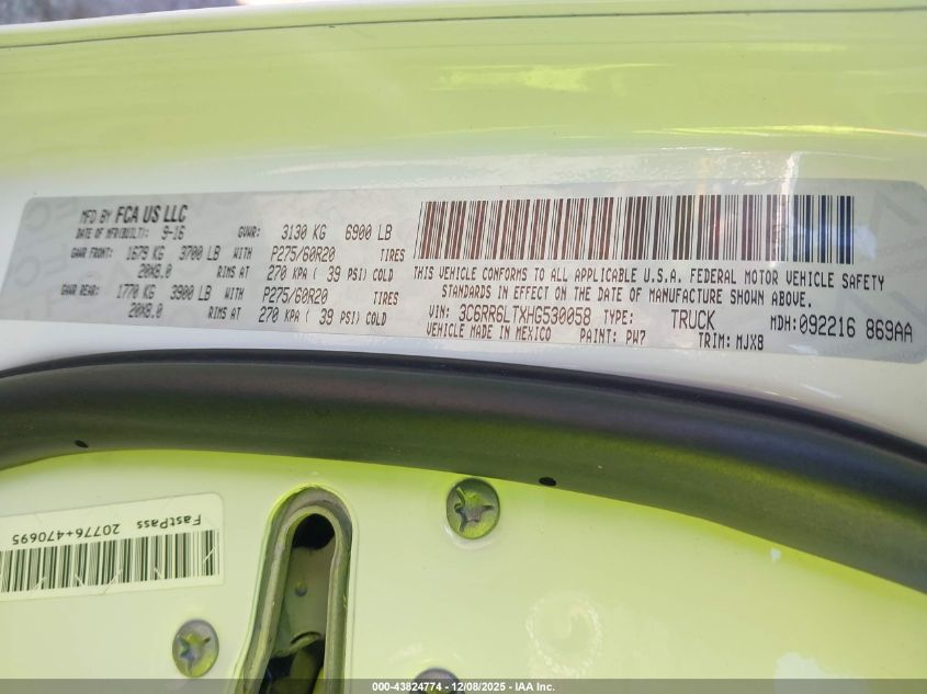 Колір БілийЦиліндри 8VIN 3C6RR6LTXHG530058Стан Заводиться та їде (перевірено)Ушкодження Передня або задня AutoRIA