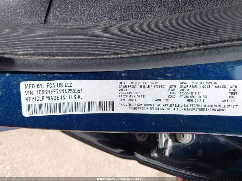 2022 RAM 1500 2022 року Бензин, 5.7, Повний привід, vin - 1C6SRFFT1NN255051 з США