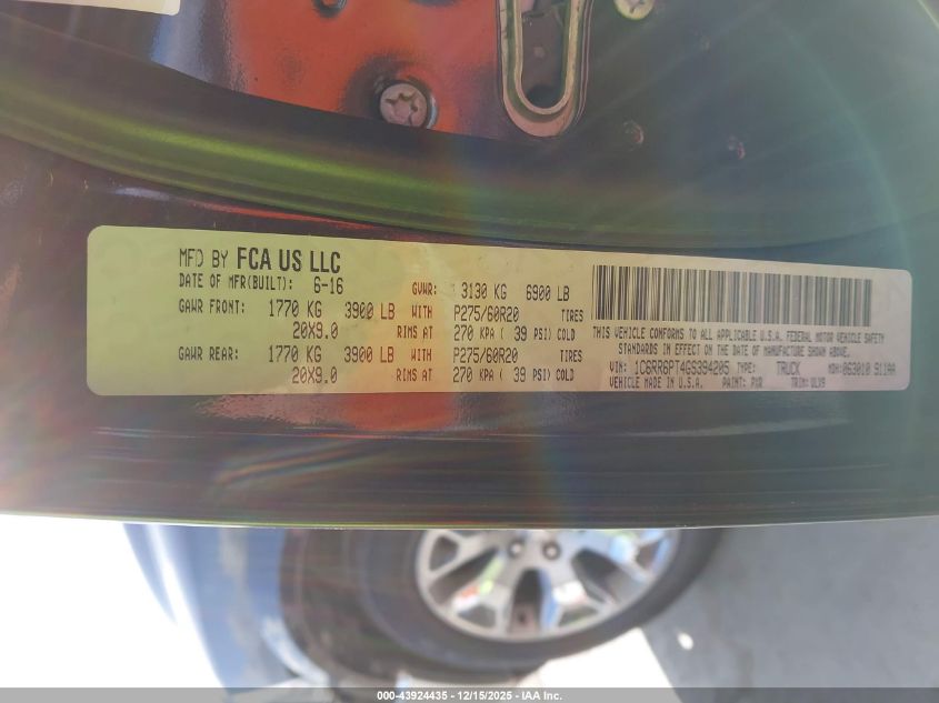 Колір ЧорнийЦиліндри 8VIN 1C6RR6PT4GS394205Стан СтаціонарноУшкодження Задня права AutoRIA