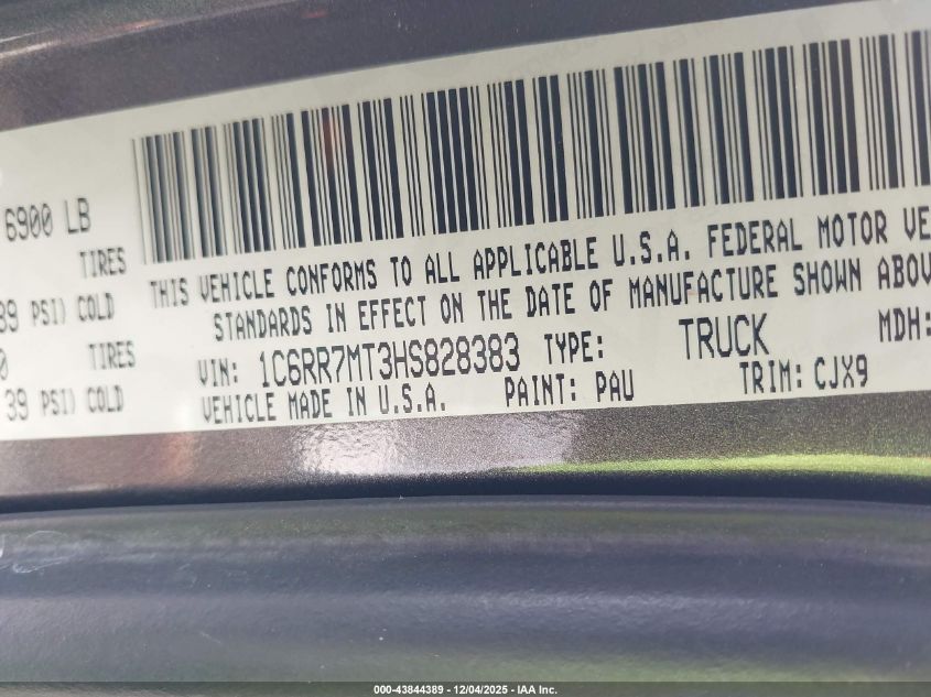 2017 RAM 1500 2017 року Бензин, 5.7, Повний привід, vin - 1C6RR7MT3HS828383 з США