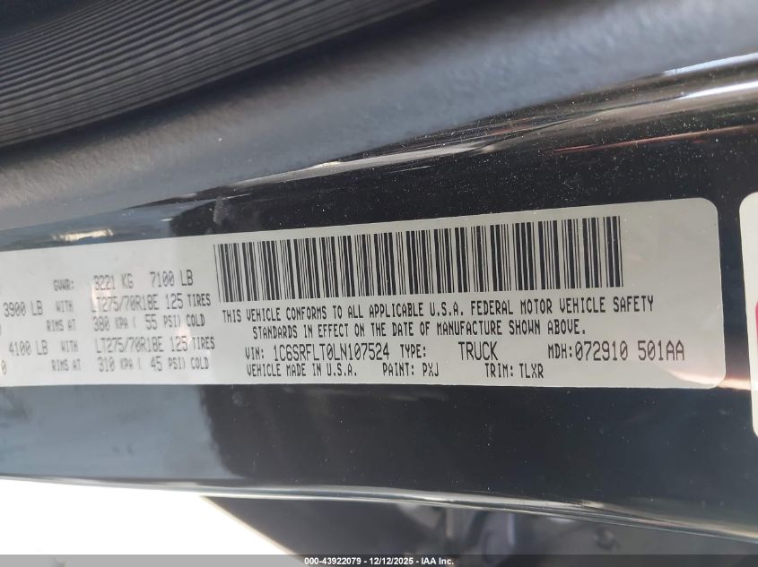 2020 RAM 1500 2020 року Бензин, 5.7, Повний привід, vin - 1C6SRFLT0LN107524 з США