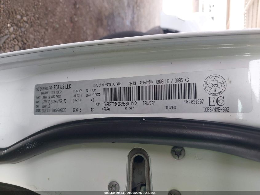 2019 RAM 1500 2019 року Бензин, 5.7, Повний привід, vin - 1C6RR7TT9KS629590 з США