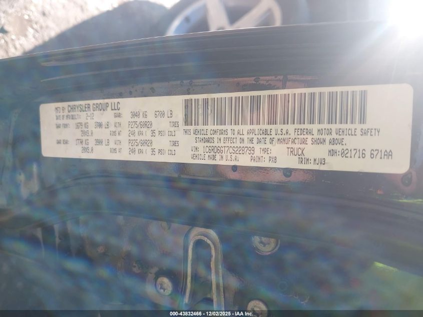 Колір ЧорнийЦиліндри 8VIN 1C6RD6GT7CS228799Стан Заводиться та їде (перевірено)Ушкодження Град