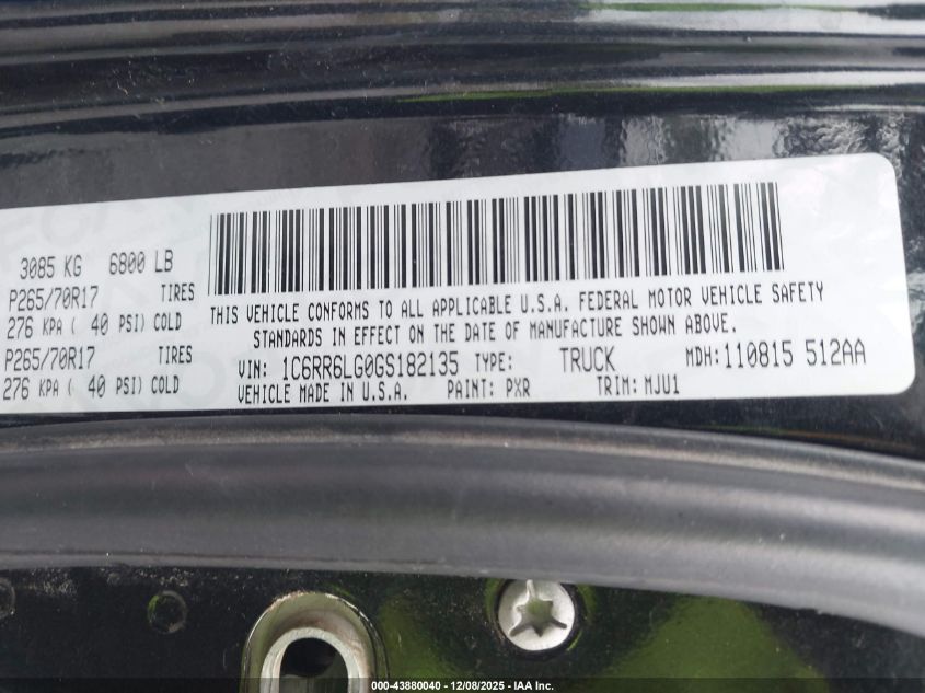 Колір ЧорнийЦиліндри 6VIN 1C6RR6LG0GS182135Стан Заводиться та їде (перевірено)Ушкодження Передня або задня AutoRIA