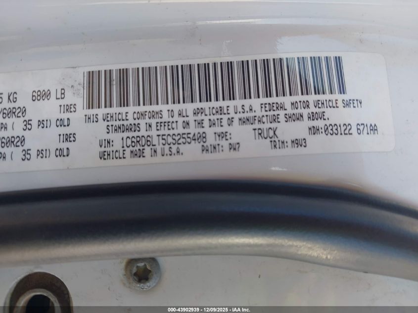Колір БілийЦиліндри 8VIN 1C6RD6LT5CS255408Стан Заводиться та їде (перевірено)Ушкодження Задня ліваДата аукціону 2025-12-17