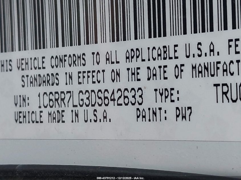 Колір БілийЦиліндри 6Привід Повний привідVIN 1C6RR7LG3DS642633Стан ЗаводитьсяУшкодження Передня ліва