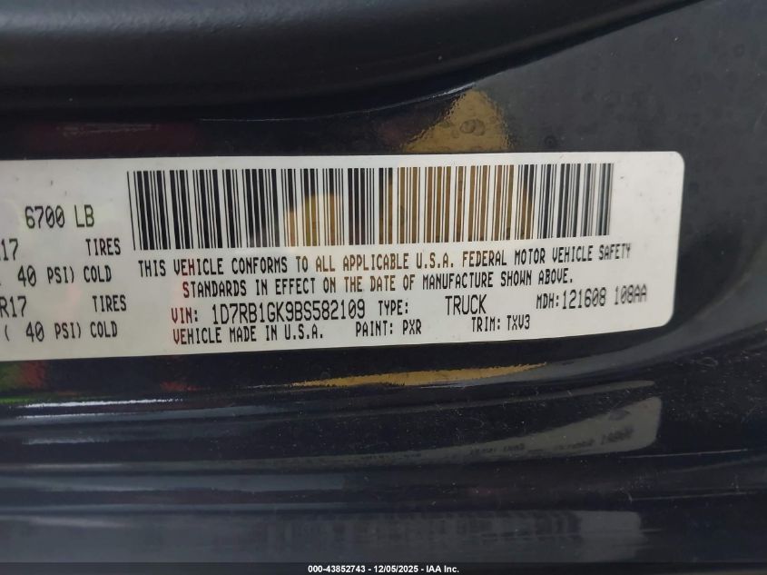 2011 RAM 1500 2011 року Бензин, 3.7, , vin - 1D7RB1GK9BS582109 з США
