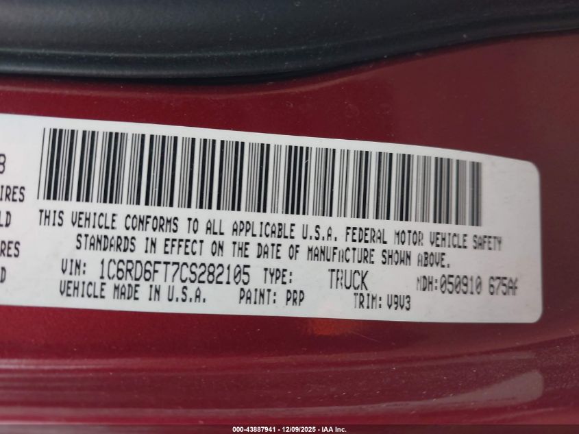 Колір БургундіяЦиліндри 8VIN 1C6RD6FT7CS282105Стан Заводиться та їде (перевірено)Ушкодження Передня права
