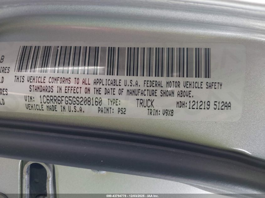 Колір СрібнийЦиліндри 6VIN 1C6RR6FG5GS208160Стан Заводиться та їде (перевірено)Ушкодження Ліва сторона AutoRIA