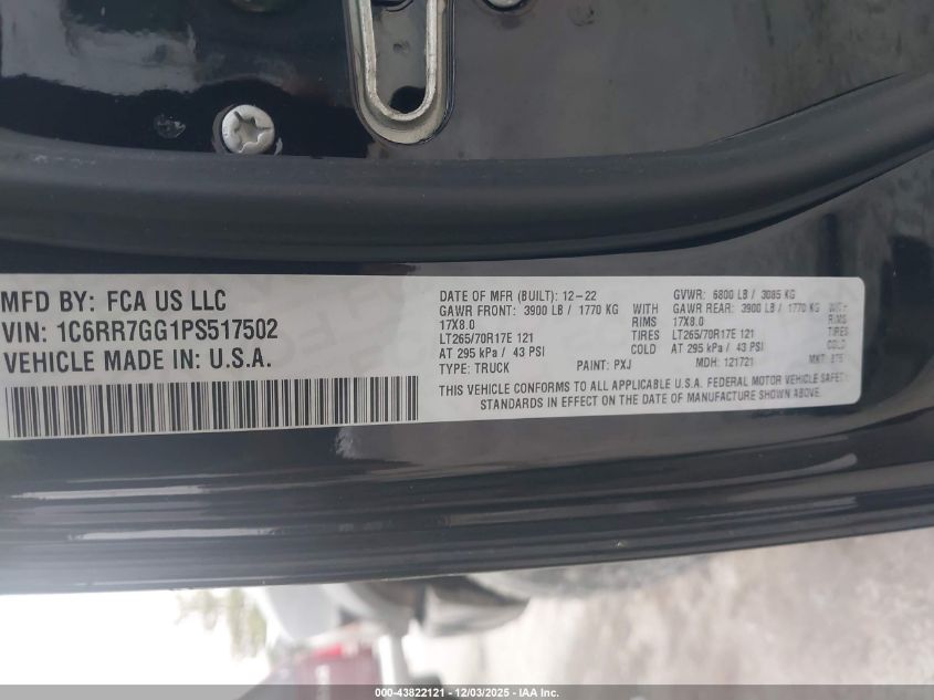 2023 RAM 1500 2023 року Бензин, 3.6, Повний привід, vin - 1C6RR7GG1PS517502 з США