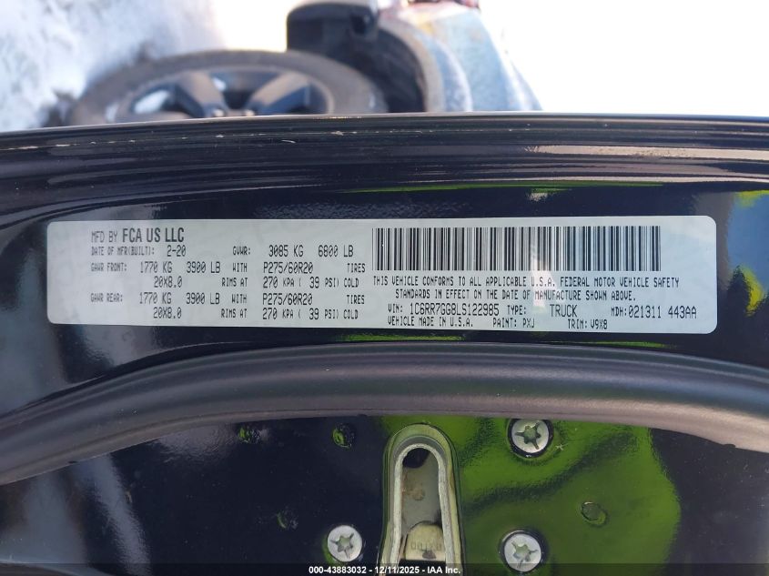 2020 RAM 1500 2020 року Бензин, 3.6, Повний привід, vin - 1C6RR7GG8LS122985 з США